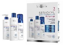 Сериоксил набор для окрашенных волос склонных к истончению Loreal наиболее эффективен. Он состоит из специального очищающего шампуня для окрашенных волос, склонных к истончению объёмом 250 мл, второго шага смываемого ухода для окрашенных волос, так же - 250 мл и мусс Сериоксил уплотняющий уход 125 мл, мгновенно поднимающий волосы. Есть у компании аналогичный набор для натуральных неокрашенных волос, для того чтобы удовлетворить потребности женщин и девушек с разными типами волос. По статистике наборы для окрашенных волос пользуются большей популярностью, чем для натуральных. Это не говорит о том, что количество женщин с окрашенными волосами больше, а свидетельствует о том, что окрашенным волосам в подавляющем большинстве случаев требуется дополнительный уход и решение возникших проблем волос и кожи головы.